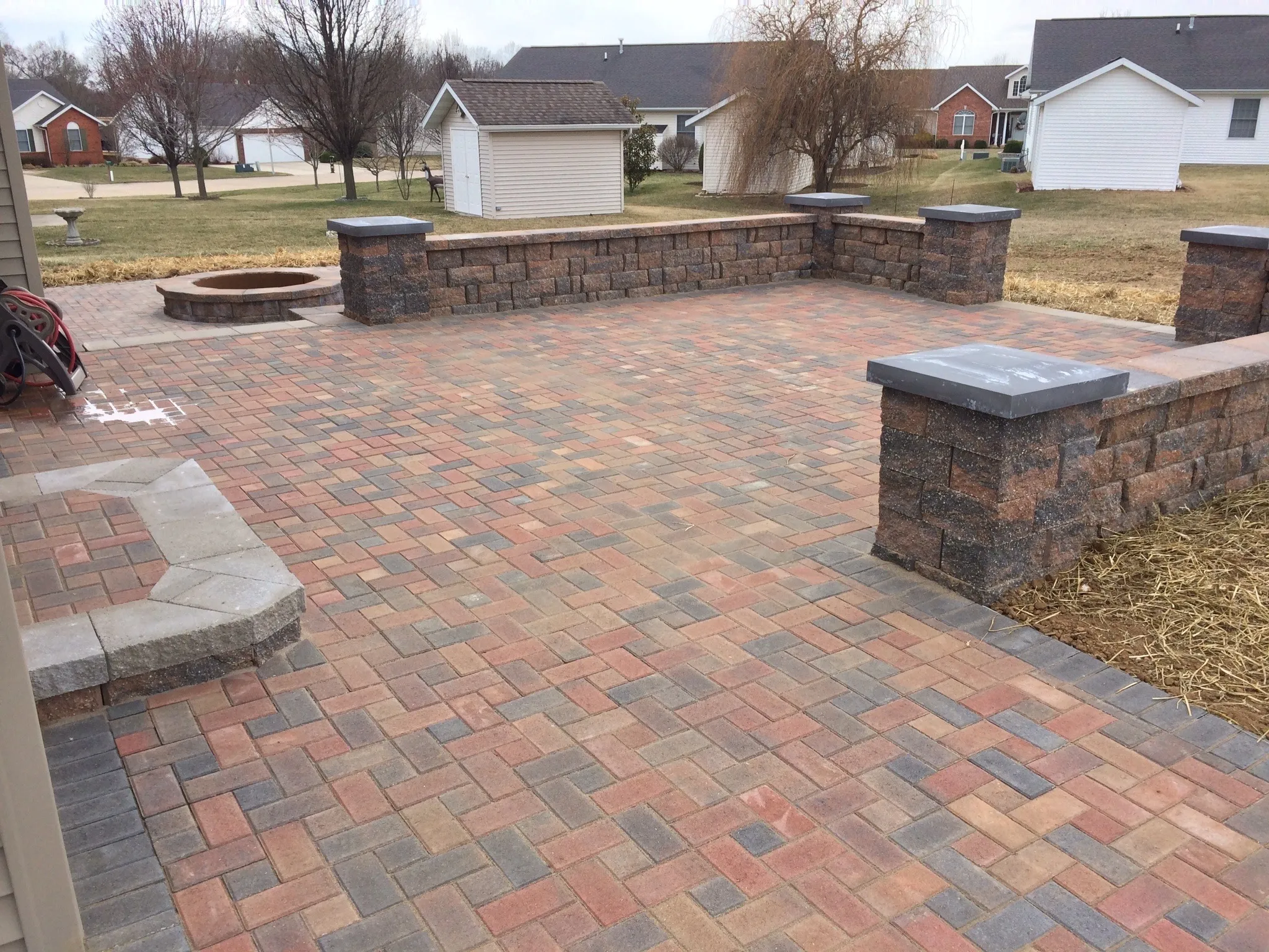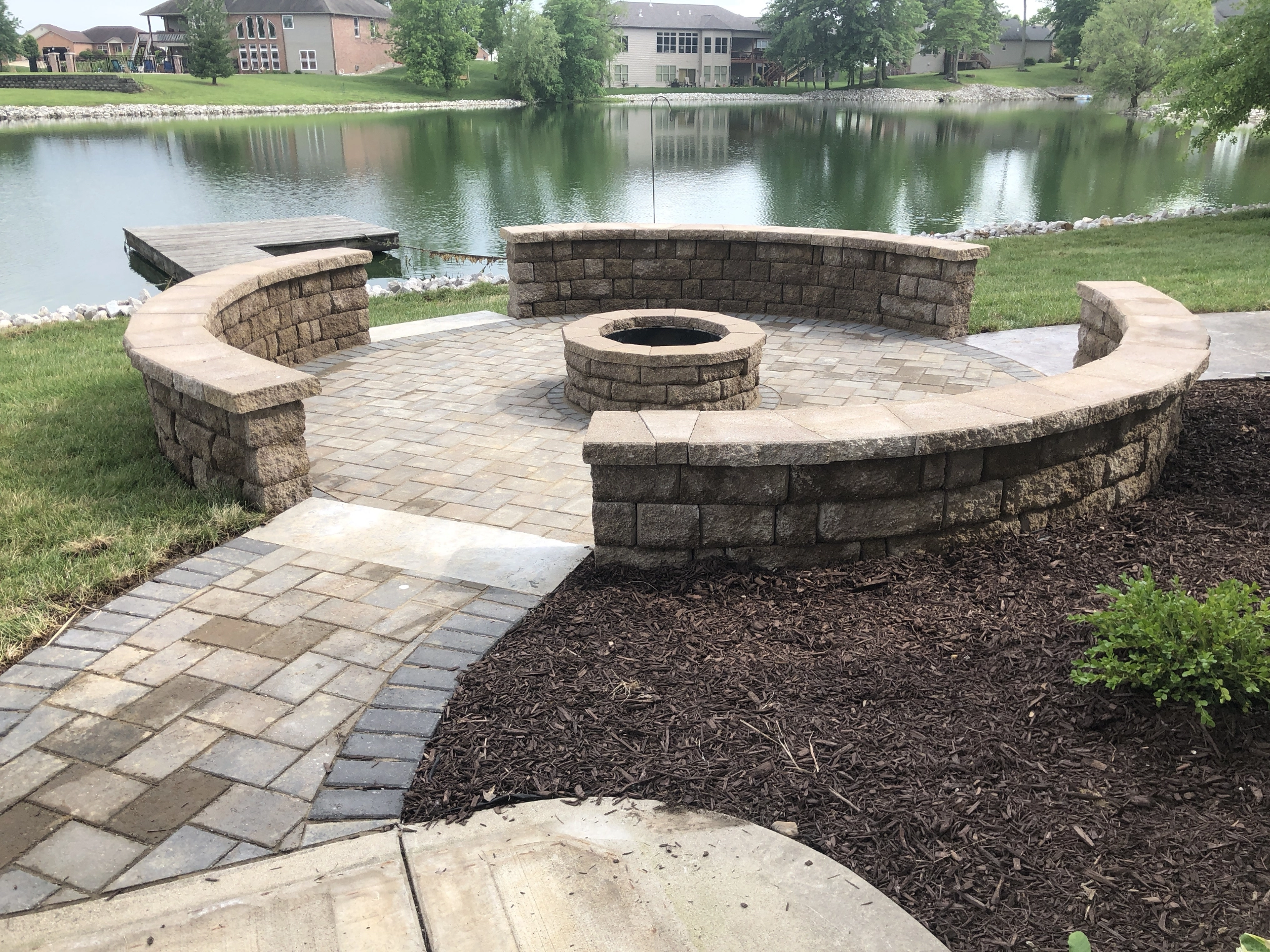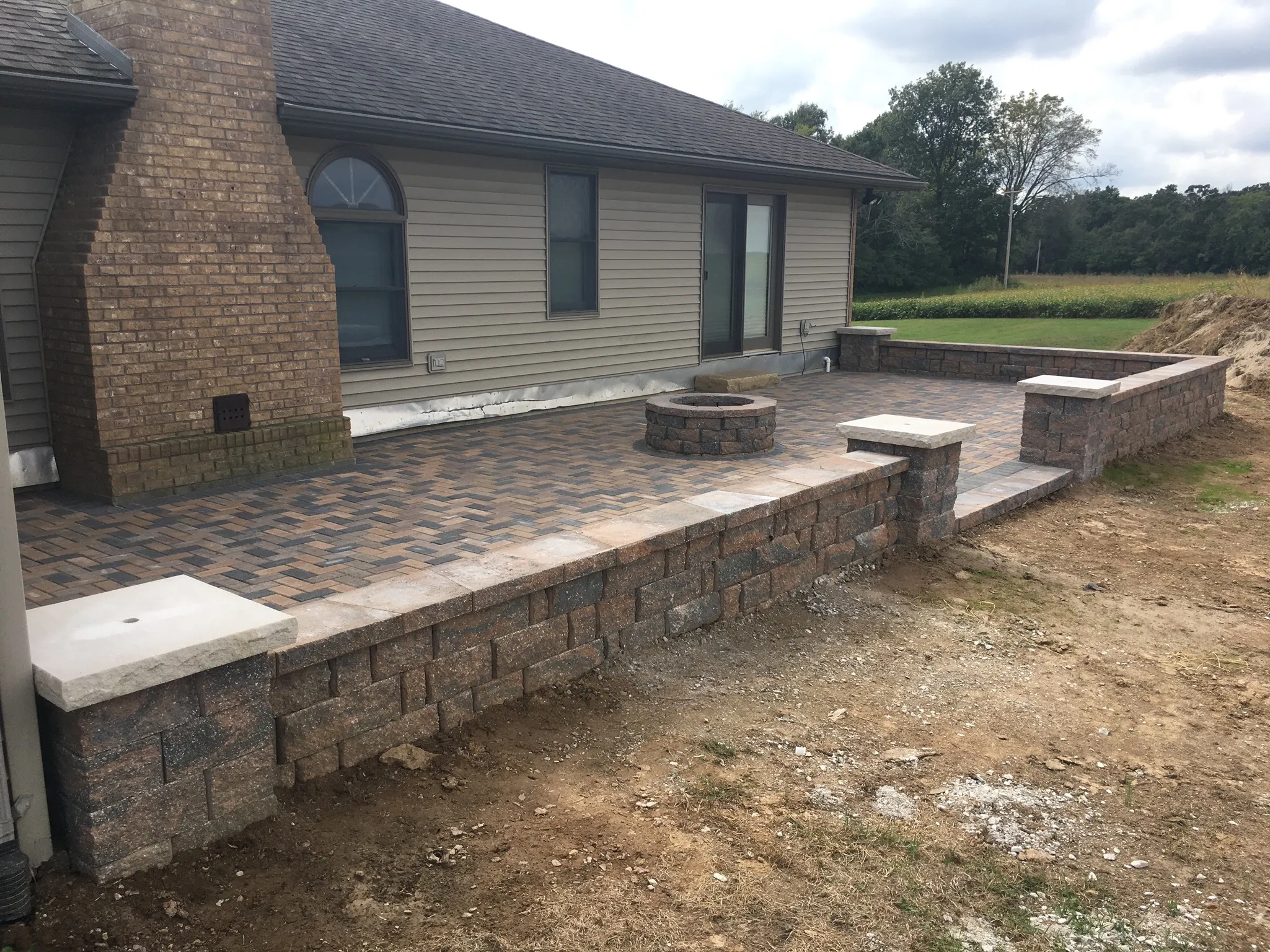 Full masonry seating walls built on concrete footings with veneer, caps, and integrated columns often fall between $25,000–$45,000+ depending on structure and finish selection.