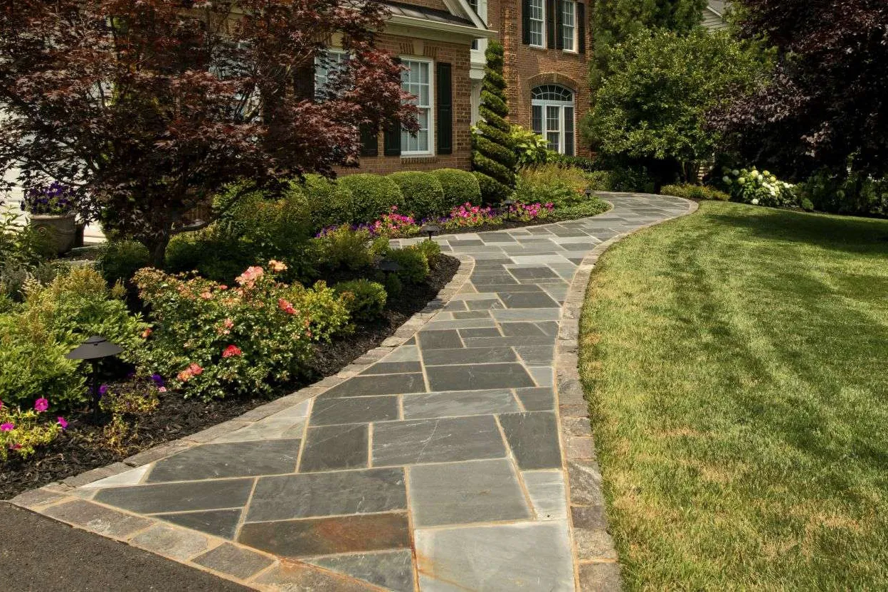 For masonry seating walls, we install a concrete footing that extends below the frost line — typically 30–34 inches in our region. The footing isolates the wall from seasonal movement and provides a rigid base. The wall is then constructed using masonry units and finished with cut caps secured using exterior-rated adhesive. This system is appropriate where rigidity, alignment with structural elements, or integration with steps and grade transitions require a fixed foundation.